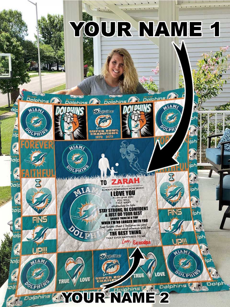 Miami Dolphins Personalized Name Quilt Blanket