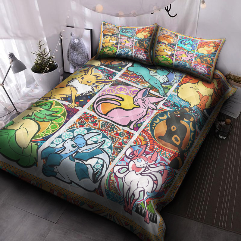 Pokemon Eevee Evolution 3d Quilt Bed Set